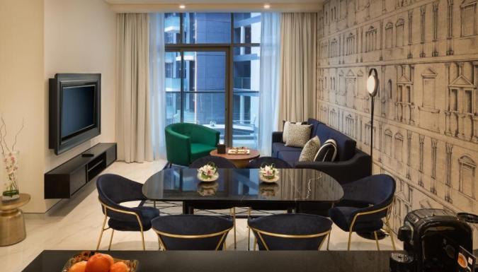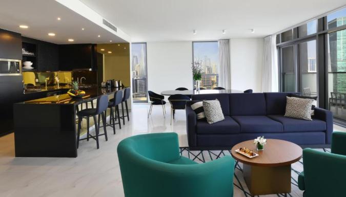 Отель расположен в самом центре Дубая, недалеко от торгового центра Dubai Mall и башни Burj Khalifa. К услугам гостей фитнес-центр, сад, терраса, гидромассажная ванна и открытый бассейн.