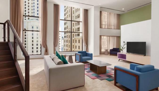 Апарт-отель Hawthorn Suites by Wyndham Dubai, JBR удобно расположен между набережной Уолк в микрорайоне Джумейра Бич Резиденс и пристанью для яхт города Дубай на центральной улице с живописным видом на Персидский залив, где проводятся многочисленные развлекательные мероприятия для всей семьи.