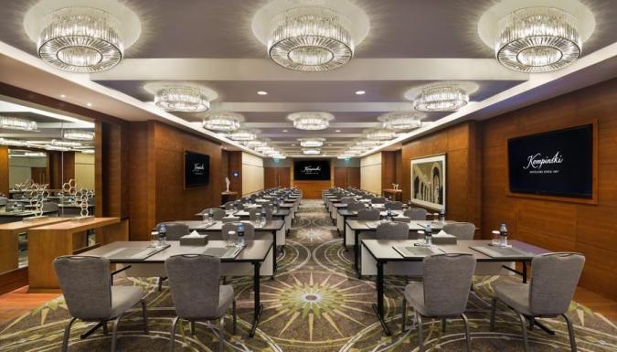 Роскошные номера и шале с видом на снежные склоны в Дубае, возможность проведения деловых встреч в одном из оборудованных конференц-залов, открытый бассейн, SPA-центр, широкий выбор блюд в ресторанах, близость к самому большому торгово-развлекательному центру и отдых на пляже Джумейра.