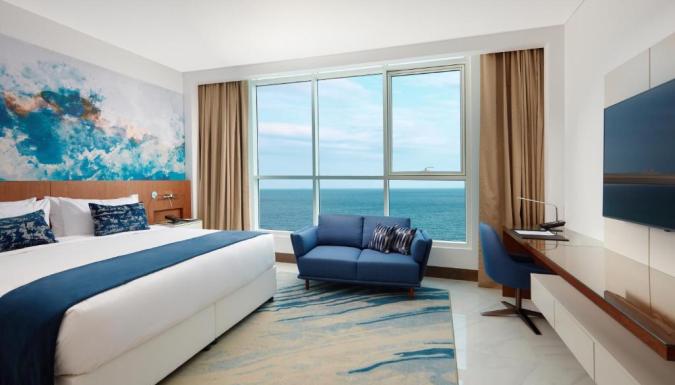 В Royal M Al Aqah Beach Resort by Gewan в номерах есть гостиная зона и телевизор с плоским экраном. В распоряжении гостей Royal M Al Aqah Beach Resort by Gewan — собственная ванная комната с душем и феном. Из окон некоторых номеров открывается вид на море.