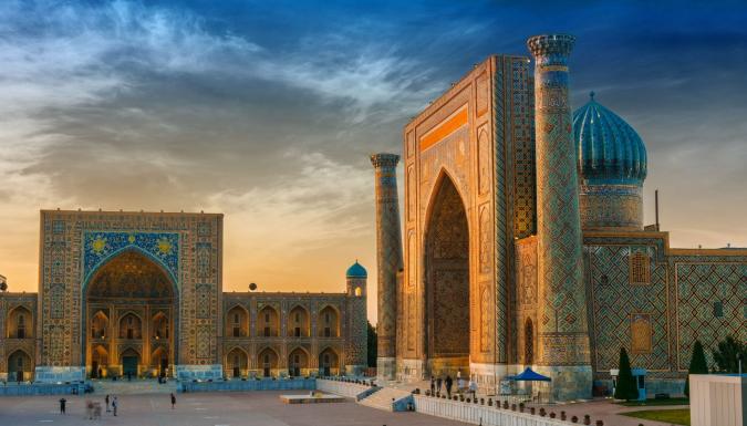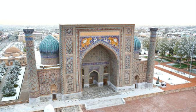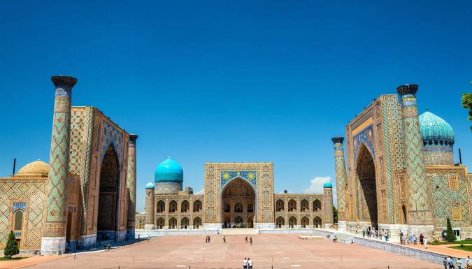 Площадь Регистан, которую составляет композиция из медресе Улугбека, медресе