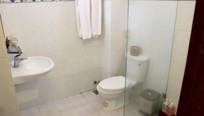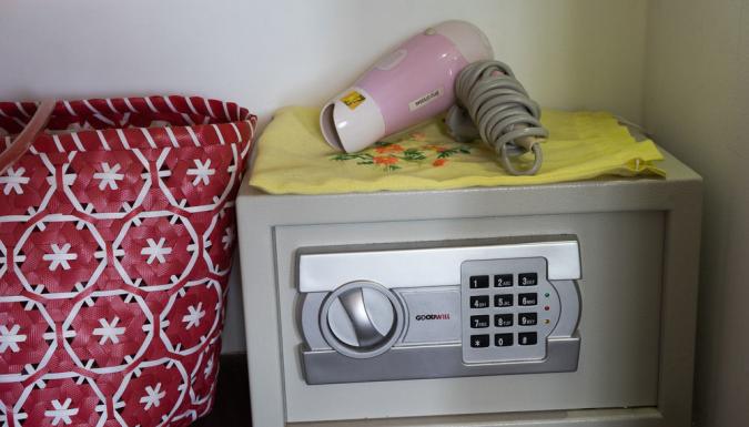 - ванная комната + фен + халат + туалетно-косметические принадлежности