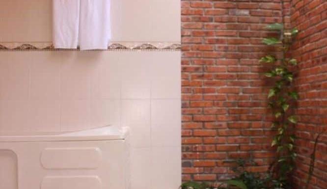 - ванная комната + фен + халаты + тапочки