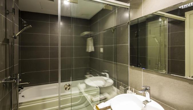 10 Deluxe city view (30 кв.м., макс. 3 взрослых + ребёнок) - спальня, ванная комната, без балкона, окно с видом на город