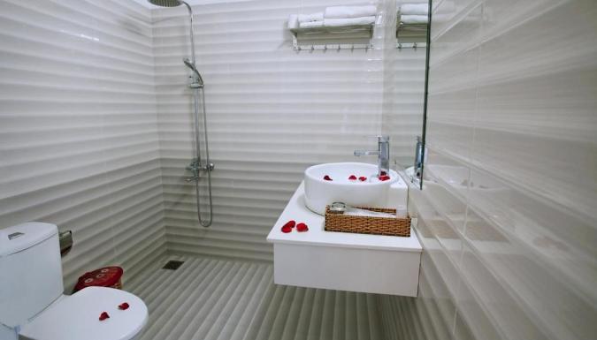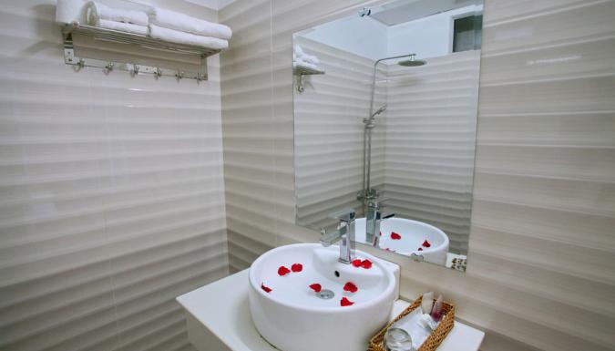 - ванная комната + туалетно-косметические принадлежности + тапочки