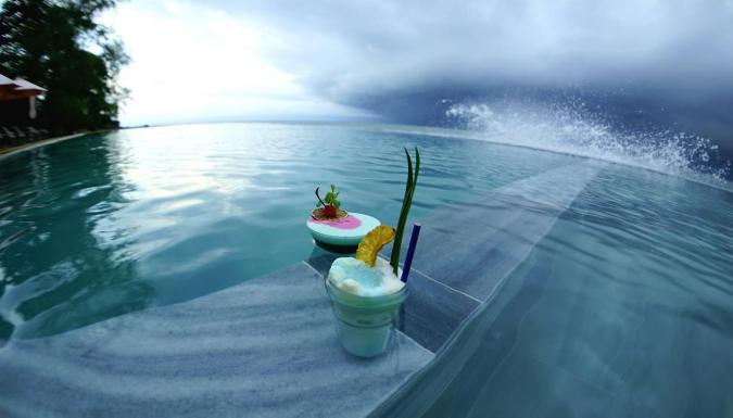 Вкусные разнообразные завтраки, хороший ресторан на берегу моря с потрясающим видом на закат