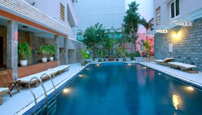 Отель в центре туристического квартала в Нячанге состоит из двух 6-этажных корпусов, через дорогу от пляжа. Собственный спа-центр, приветливый персонал, неплохой сервис. Вариант для экономичного пляжного отдыха.