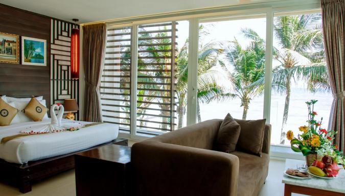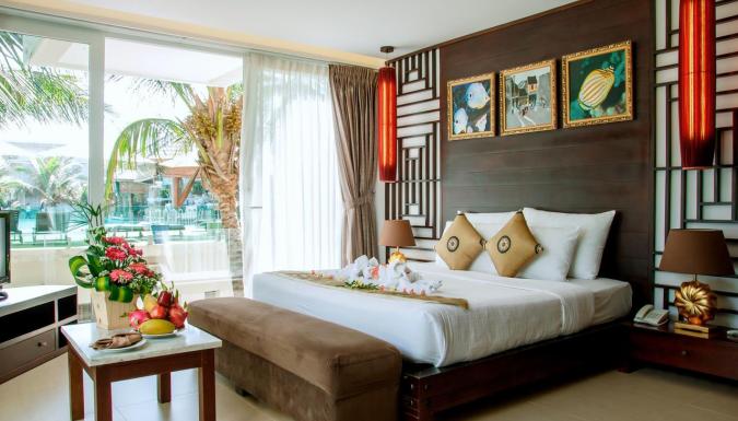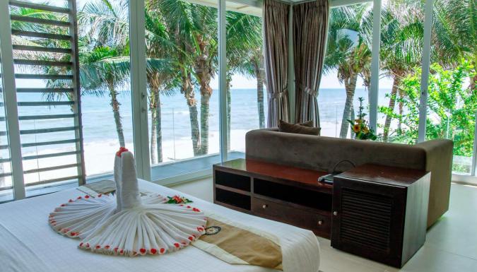 - 6 номеров люкс с двуспальной кроватью размера king-size и видом на пляж (60 кв.м).