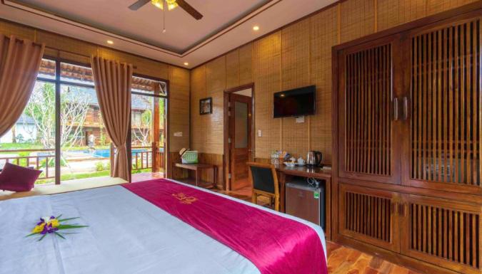 Phu Quoc Bambusa Resort — это отель в городе Фукуок, в 2,1 км от такой достопримечательности, как Пляж Онг-Ланг. Среди удобств — бесплатные велосипеды, открытый бассейн, сад и бесплатная частная парковка. Среди удобств отеля с 3 звездами — общий лаундж, а также номера с кондиционером, бесплатным Wi-Fi и собственной ванной комнатой. На территории работает ресторан, где подают морепродукты и блюда вьетнамской кухни, и бар, где можно заказать коктейли.