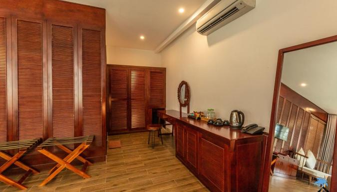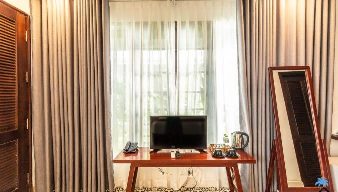 • Душ • Фен • Бесплатные туалетно-косметические принадлежности • Тапочки • Биде • Полотенца • Мини-бар • Сейф • Кондиционер • Услуга «звонок-будильник» / будильник • Холодильник • Гладильные принадлежности • Гостиный уголок • Телевизор с плоским экраном • Отдельный вход • Звукоизоляция • Плиточный/мраморный пол • Электрический чайник • Москитная сетка • Шкаф или гардероб • Белье • Мебель на улице • Помещение полностью находится на первом этаже • Вешалка для одежды