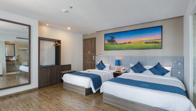 Отель в Нячанге. К услугам гостей ресторан, сезонный открытый бассейн, терраса, фитнес-центр и общий лаундж. Номера оснащены необходимым для проживания. Неподалеку такие популярные достопримечательности, как пляжный клуб Sailing Club, Парусный центр Вьетнама. За дополнительную плату для гостей организуют трансфер от/до аэропорта.