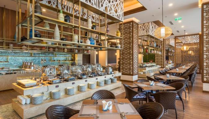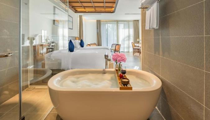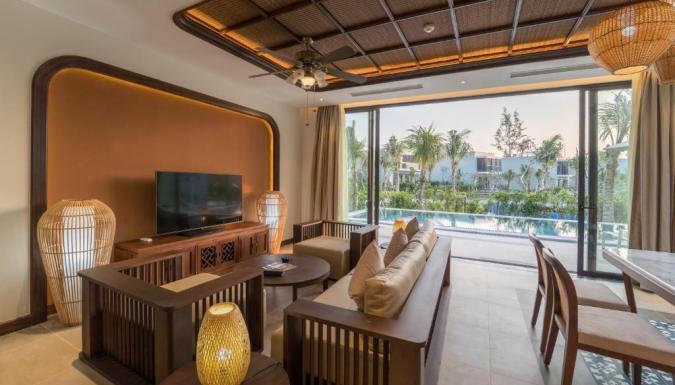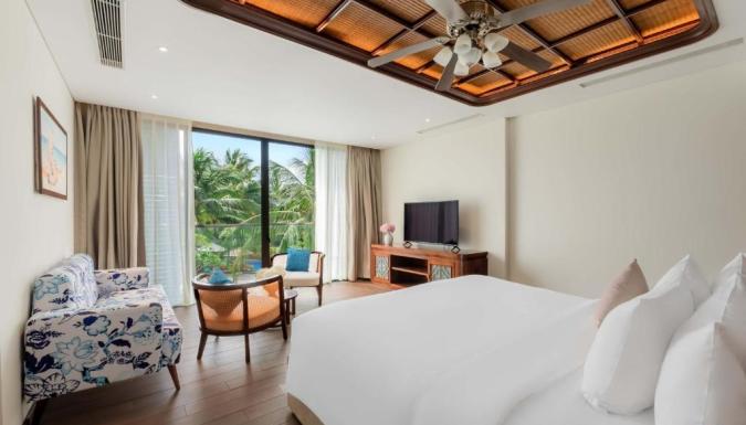 К услугам гостей курортного отеля с видом на море в окружении пышных тропических садов 566 просторных номеров, роскошные люксы и потрясающие виллы, а также впечатляющий 300-метровый бассейн в форме лагуны, спа-салон Thala, фитнес-центр и детский клуб Nemo. В течение всего дня в ресторане Essence подают изысканные блюда вьетнамской и интернациональной кухни. Бар у бассейна Oasis отлично подходит для отдыха. В баре на крыше C View Sky с потрясающим видом на море можно насладиться коктейлями на закате.