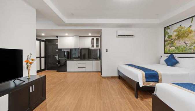 Kamala Hotel & Apartment Da Nang — это отель с 3 звездами в городе Дананг, в 300 м от такой достопримечательности, как Пляж Микхе. В распоряжении гостей ресторан. Мост через реку Хан — примерно в 2,1 км, а Мост влюбленных в Дананге и Торговый центр Indochina Riverside Mall — в 2,5 км и 3 км соответственно. Гости могут обратиться к сотрудникам круглосуточной стойки регистрации, воспользоваться трансфером от/до аэропорта или доставкой еды и напитков, а также подключиться к бесплатному Wi-Fi.