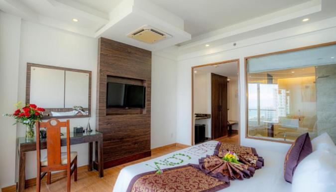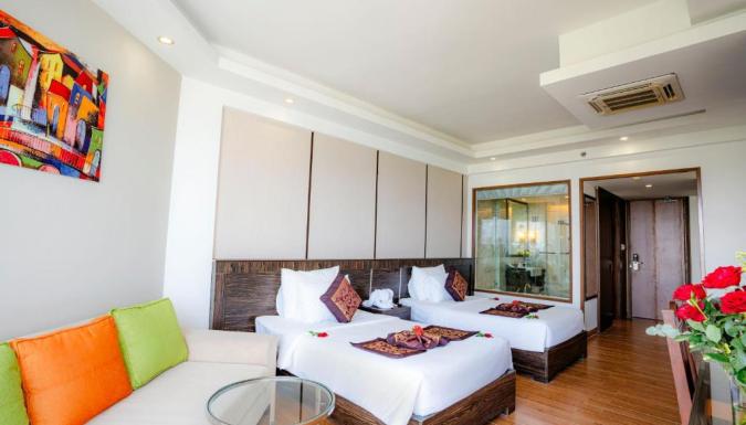 Курортный отель, расположенный в тихом уголке прибрежного города, предлагает своим гостям с комфортом насладиться теплым солнцем и морским бризом на одном из самых красивых пляжей Вьетнама. К услугам гостей также открытые бассейны, тренажерный зал и детская площадка, а также Wi-Fi, который предоставляется на территории всего отеля.